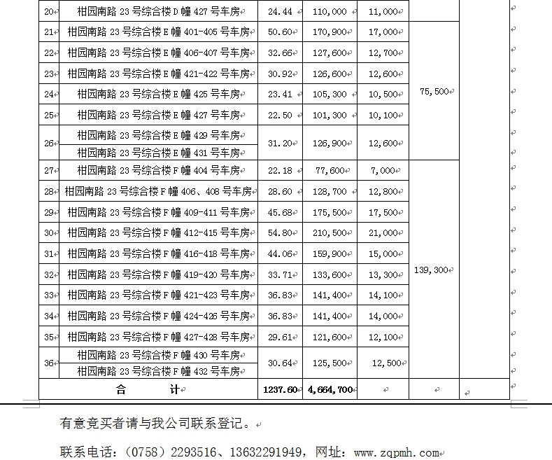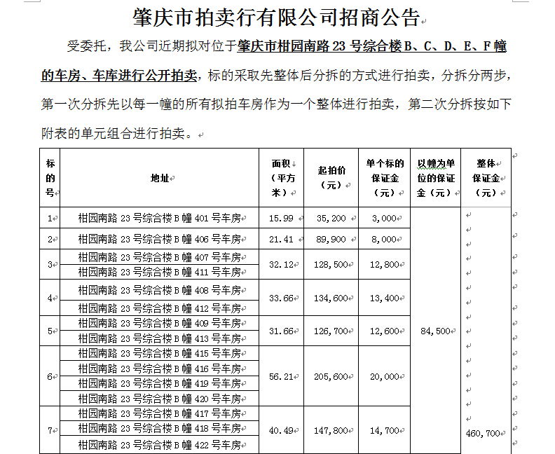 肇慶市柑園南路23號(hào)綜合樓車房、車庫擬公開拍賣的招商公告