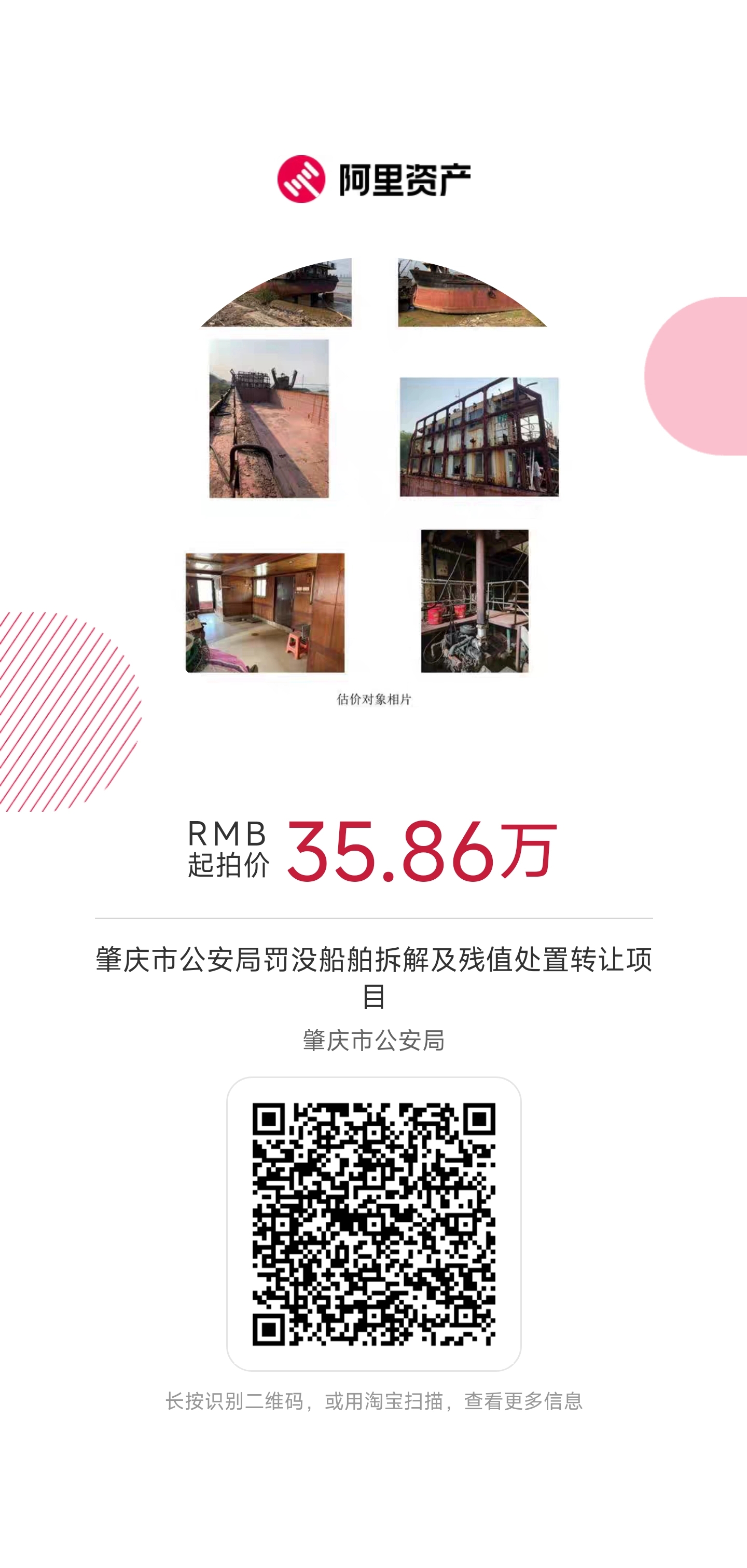 標的物:肇慶市公安局罰沒船舶拆解及殘值處置轉讓項目。