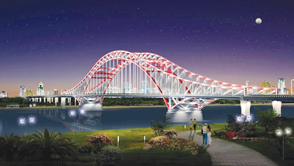 長淮衛(wèi)公路橋及接線工程全長14.1公里。整個(gè)工程除長淮衛(wèi)公路橋外,還包括兩座下穿鐵路立交橋和兩座小型橋梁,工程概算總投資約18億元。據(jù)介紹,長淮衛(wèi)公路橋總長4266米,南起龍子湖區(qū)長淮衛(wèi)鎮(zhèn),北接淮上區(qū)吳小街鎮(zhèn)。大橋主橋長360米,寬42.5米,為雙向八車道;引橋部分略窄,寬41.5米。長淮衛(wèi)橋采用桁架拱橋橋型,主體為鋼結(jié)構(gòu),遠(yuǎn)望如飛龍橫跨淮河,氣勢宏偉。我市現(xiàn)有的三座淮河公路橋分別是斜拉橋、梁式橋和懸索橋,如今再添桁架拱橋,一橋一景,仿佛橋梁博物館。